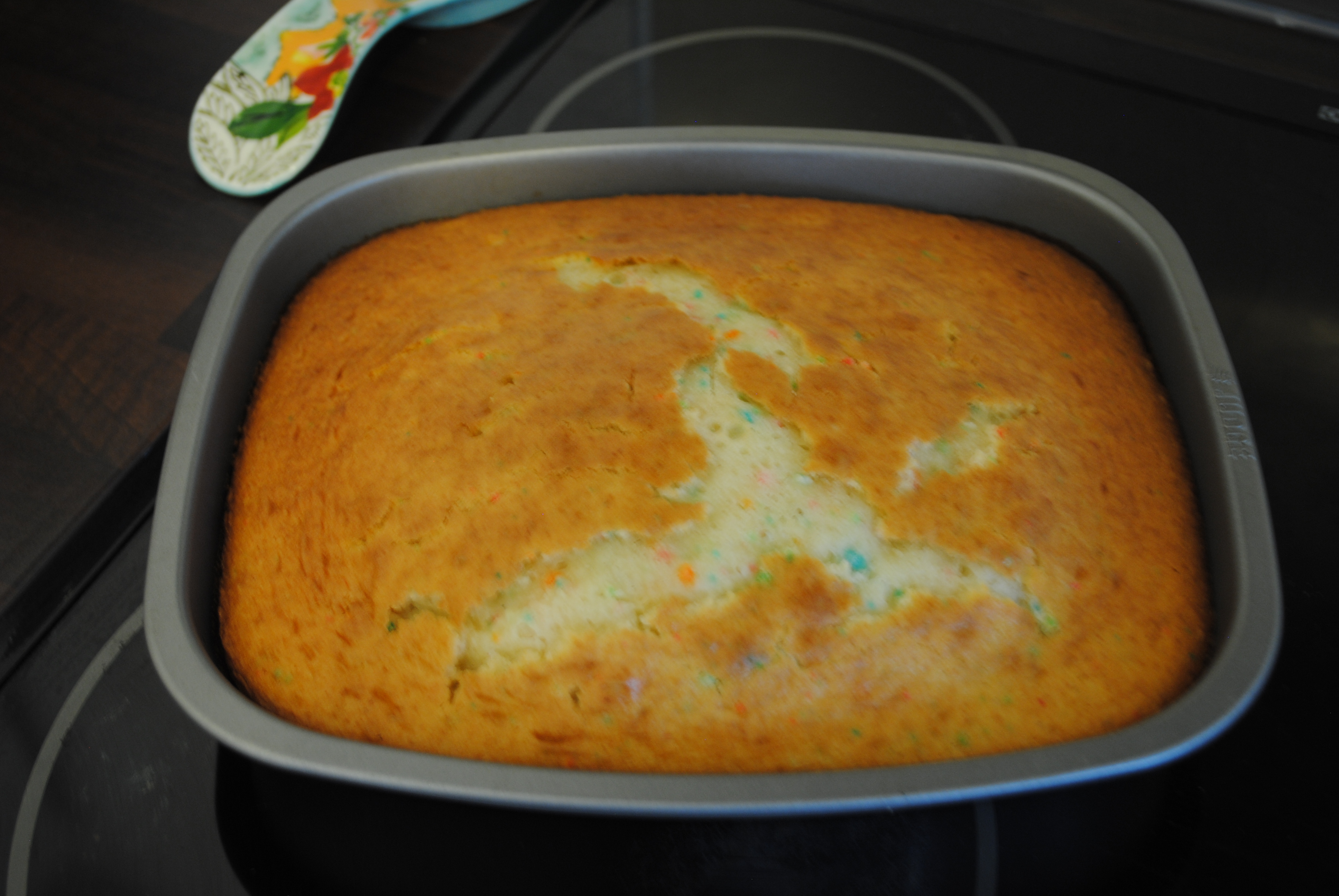 1) Bake the cake according to the directions on the back of the box (for a 13×9 cake). Allow the cake to cool.