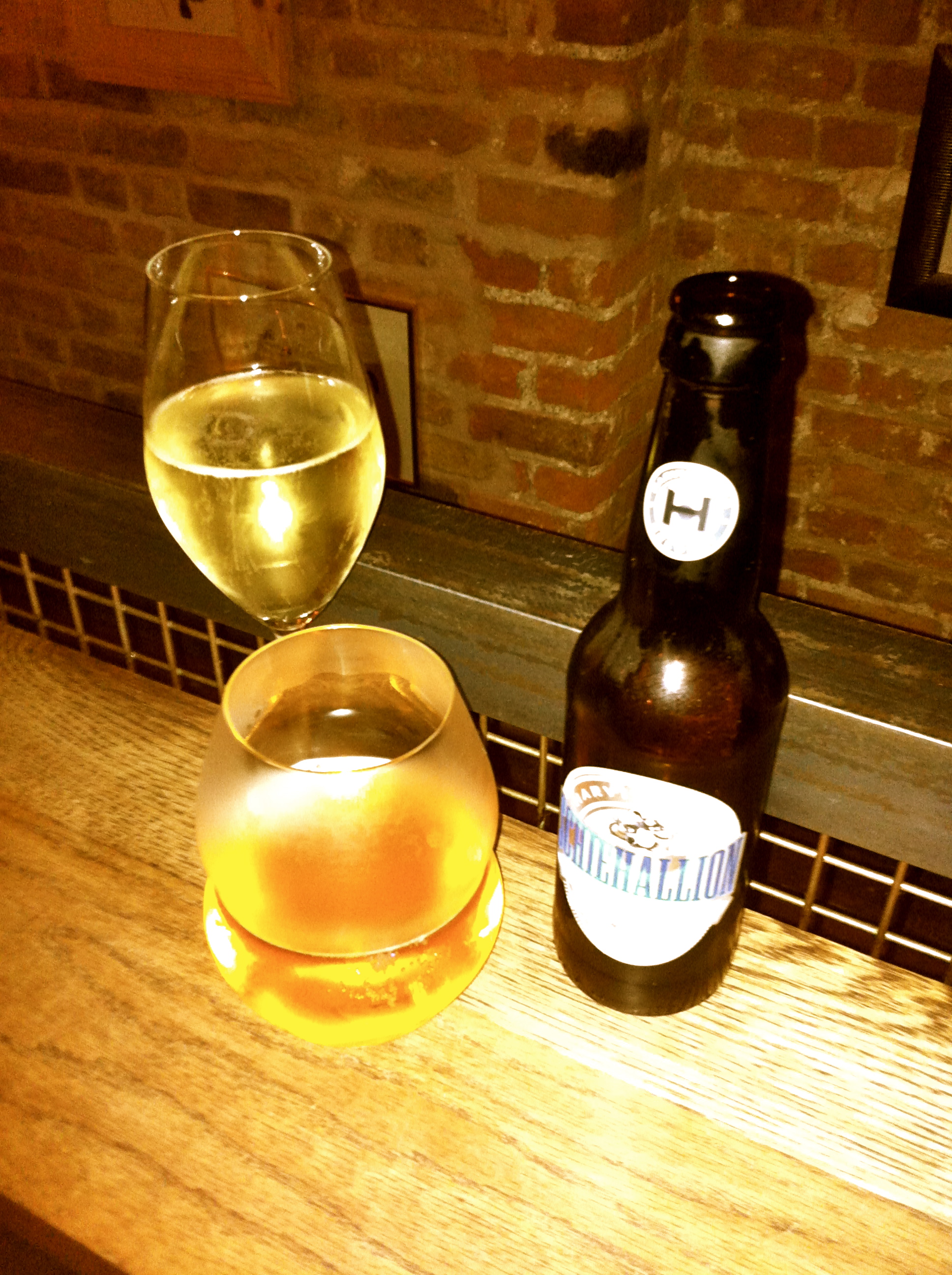 When finally seated with my friend at around 7:30pm at the little slab of wood (lucky us!), we ordered some champagne and beer and surveyed the options.