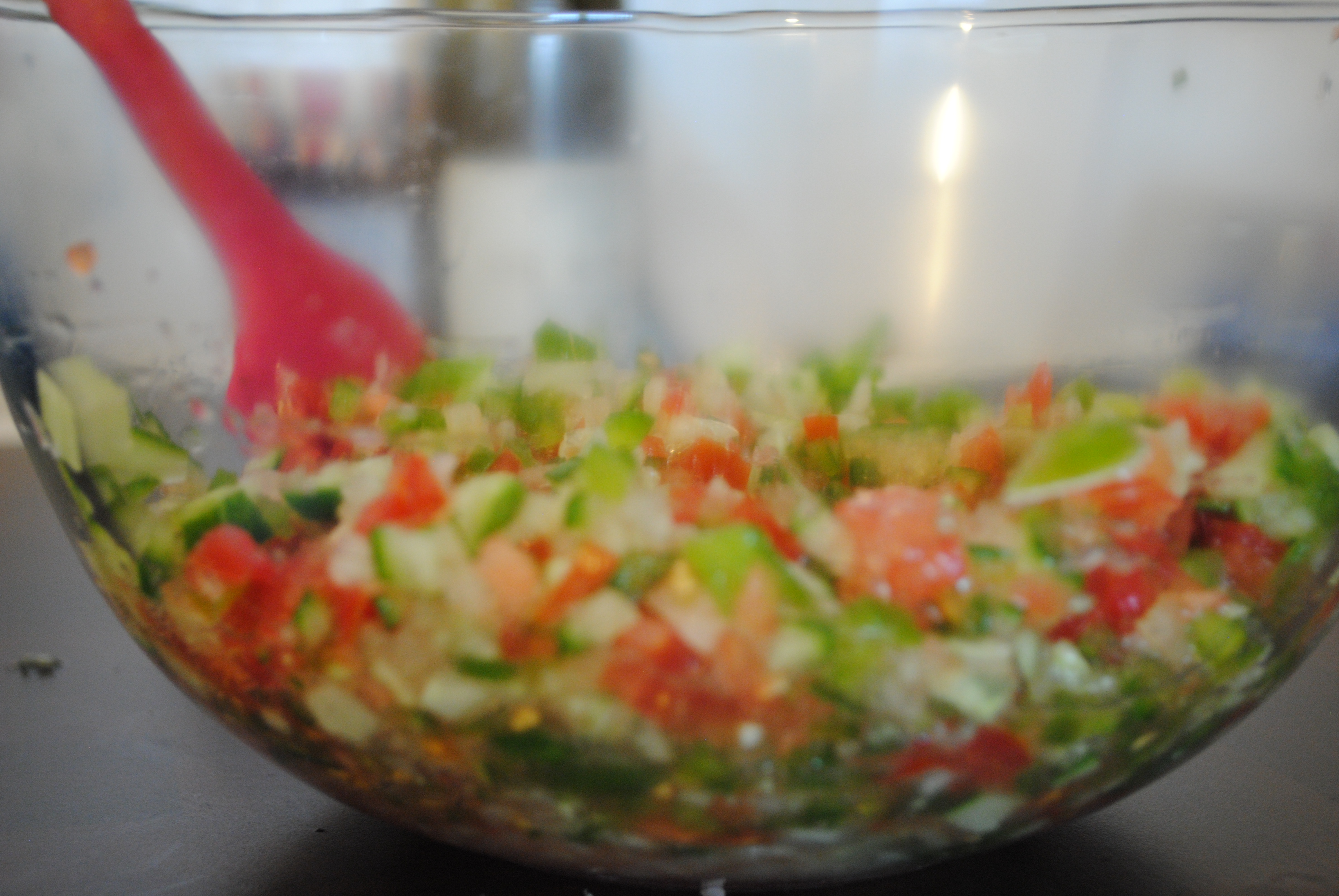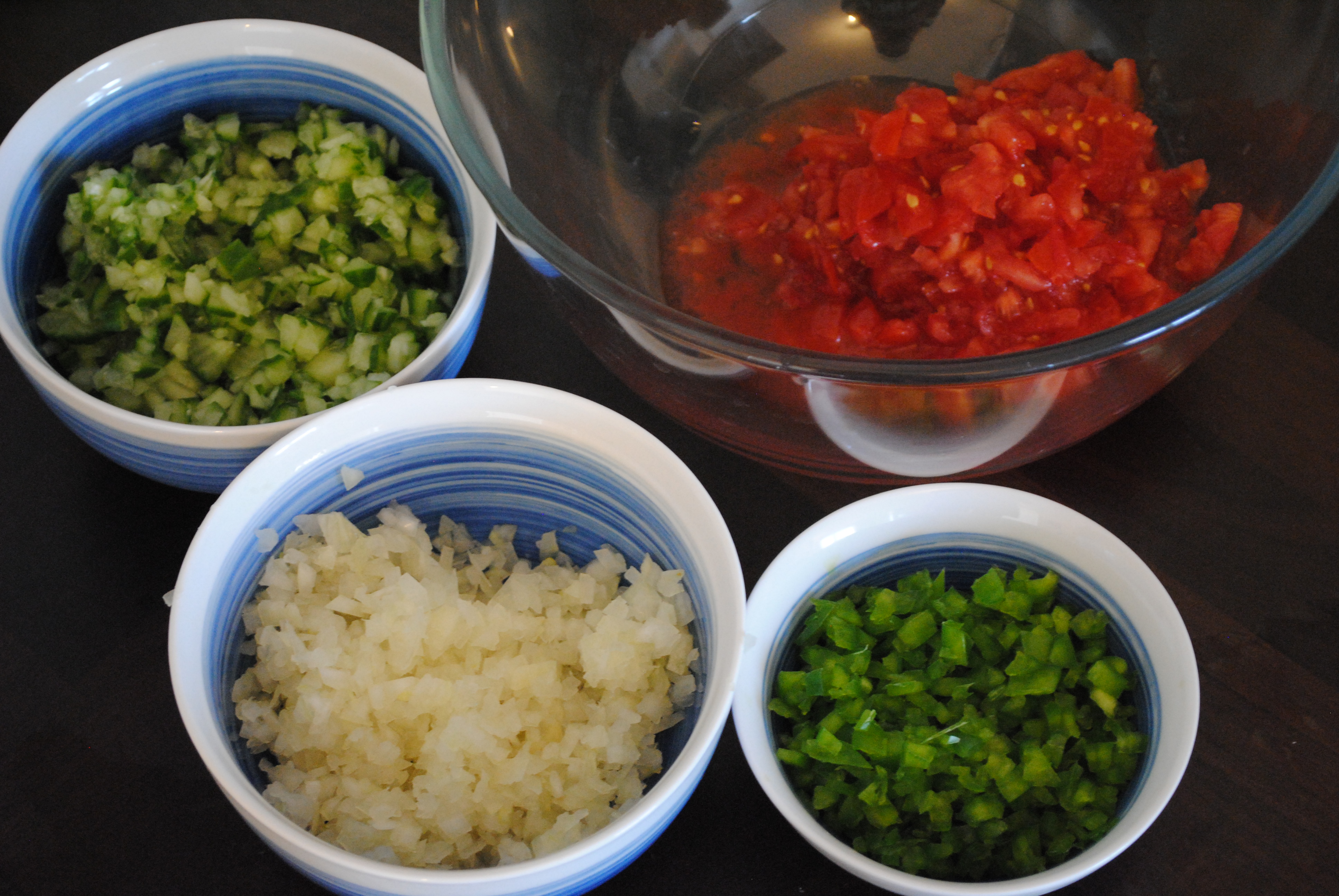 Due to the recent (positive) shift in the weather, I’ve decided to dust off my mother’s gazpacho recipe. Gazpacho is appealing for many reasons one being it is relatively cheap to make, two being that it is refreshing when the weather is hot, three being that you can make massive quantities of it as it keeps well in the fridge and the fourth reason being that it tastes good.
