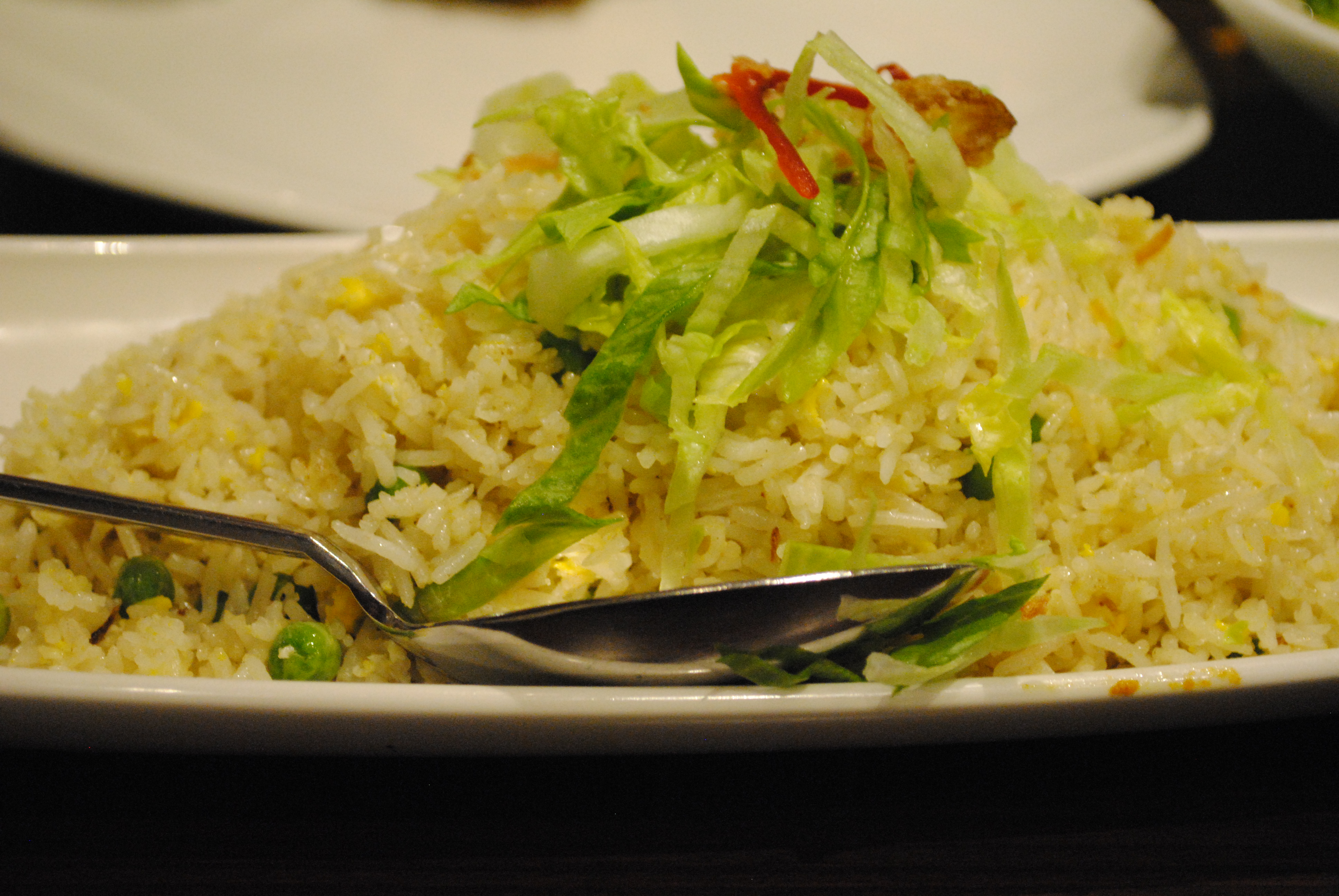 Side dishes included: Sayur Goreng Bersos Tiram (stir-fried mixed fresh vegetables with garlic & oyster sauce), Sambal Belacan (apparently famous Malaysian chilli & shrimp paste served with cucumbers — didn’t know about that either), Nasi Lemak Kosong (plain coconut rice), and Nasi Goreng Telur ( egg fried rice with green peas)