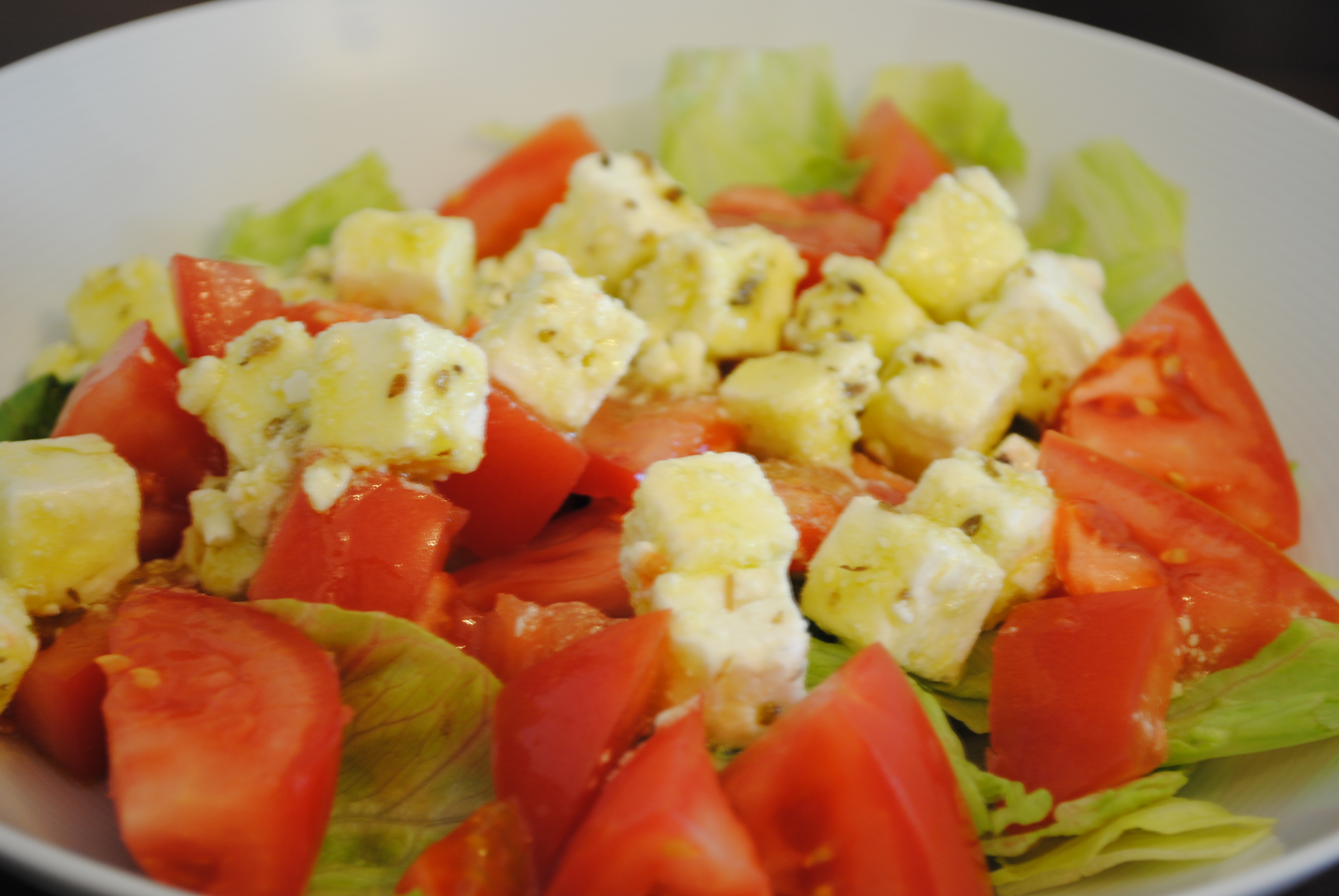To make this meal a little bit healthier, make some salad. If you have the same taste as the beast, Greek salad is a good addition: just toss some iceberg lettuce, sliced tomatoes, crumbled feta, oregano, olive oil and sea salt et voila.