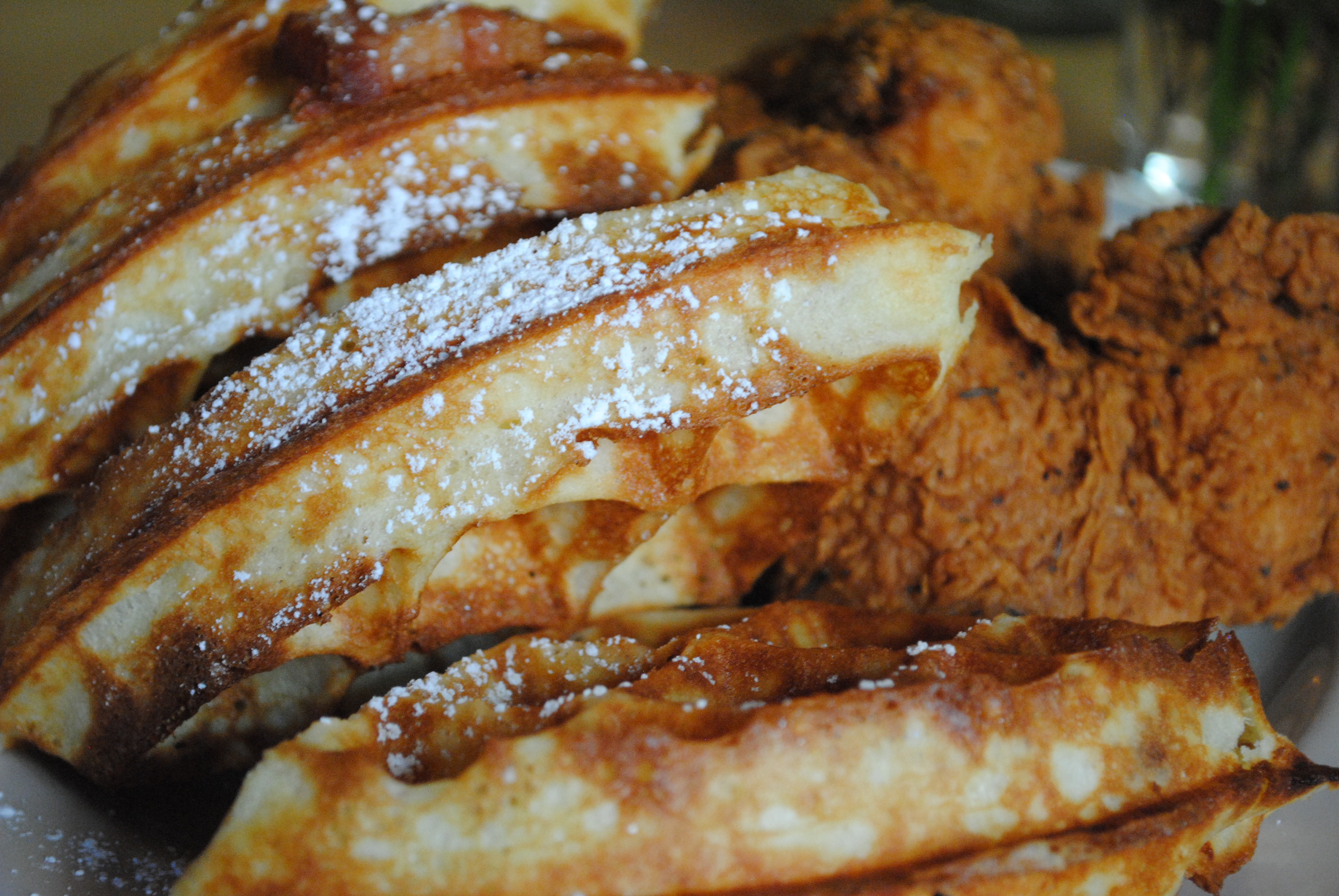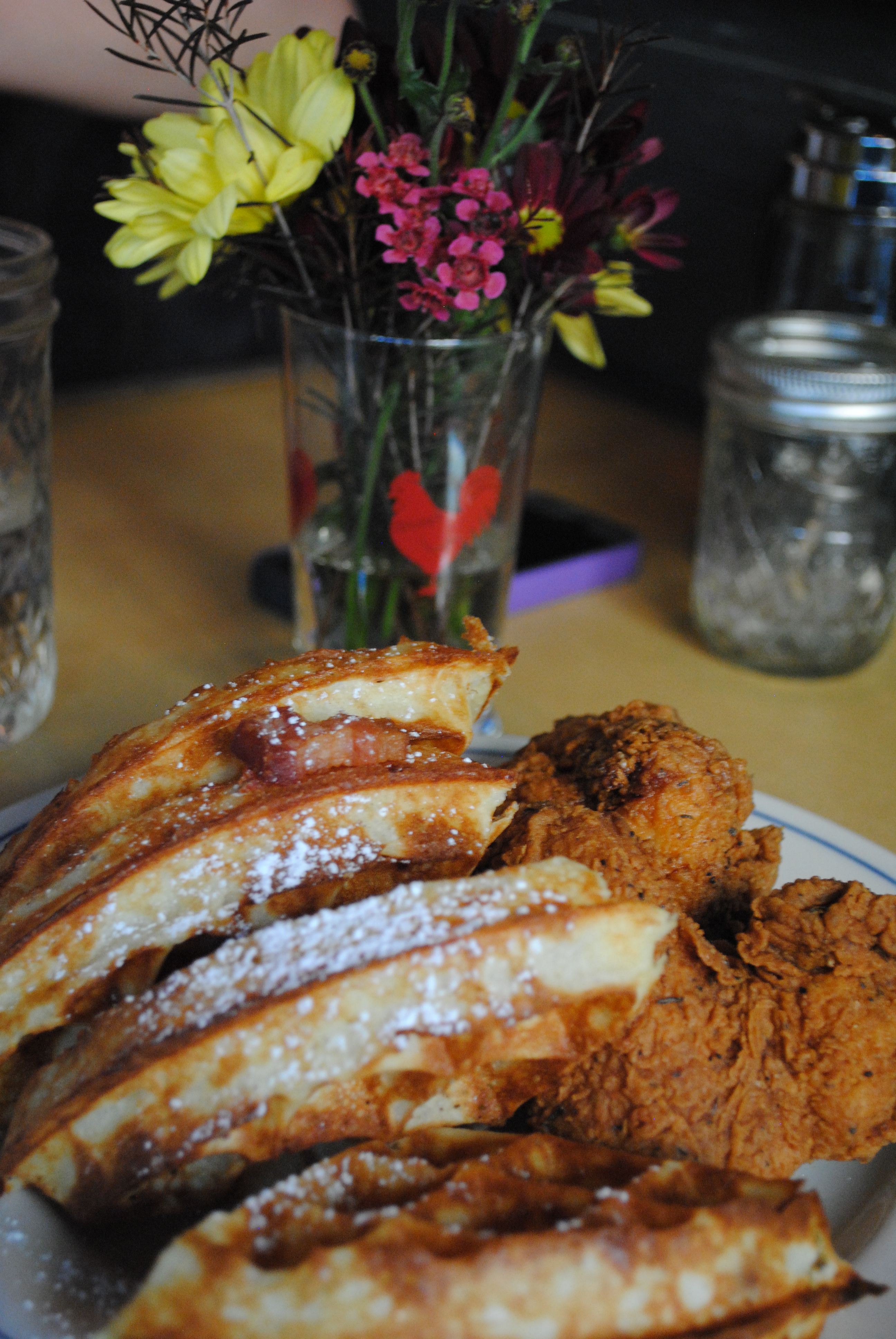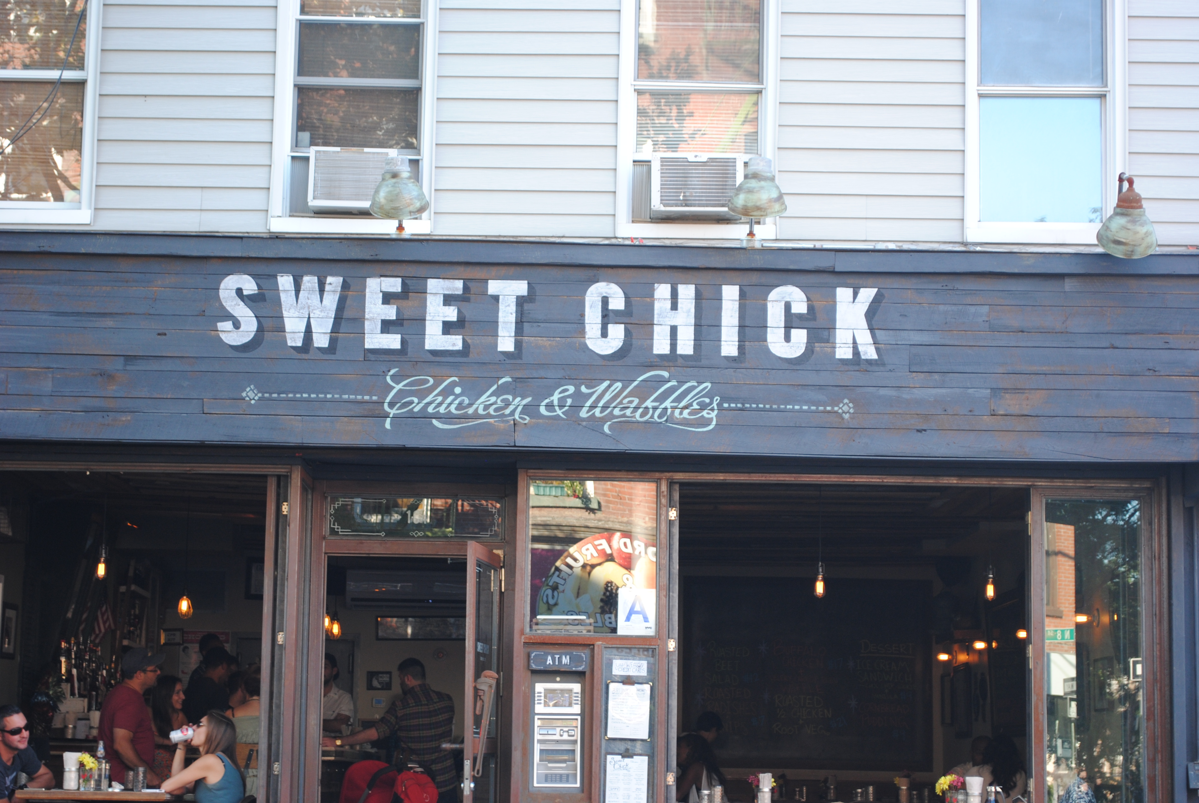 I wouldn’t normally venture to Brooklyn for anything really, but since my lovely little niece and nephew reside there I decided to venture out there. If I’m 100% honest, it’s also because I read this place served damn good fried chicken and waffles. Located in the quirky hipster area of Williamsburg, Sweet Chick’s menu consists of classic Southern Comfort dishes with what I would call is a slight New York twist. Serving up items such as macaroni and cheese topped with crumbled Ritz crackers and fried chick(en) with choices of rosemary and mushroom waffles or bacon and cheddar waffles.