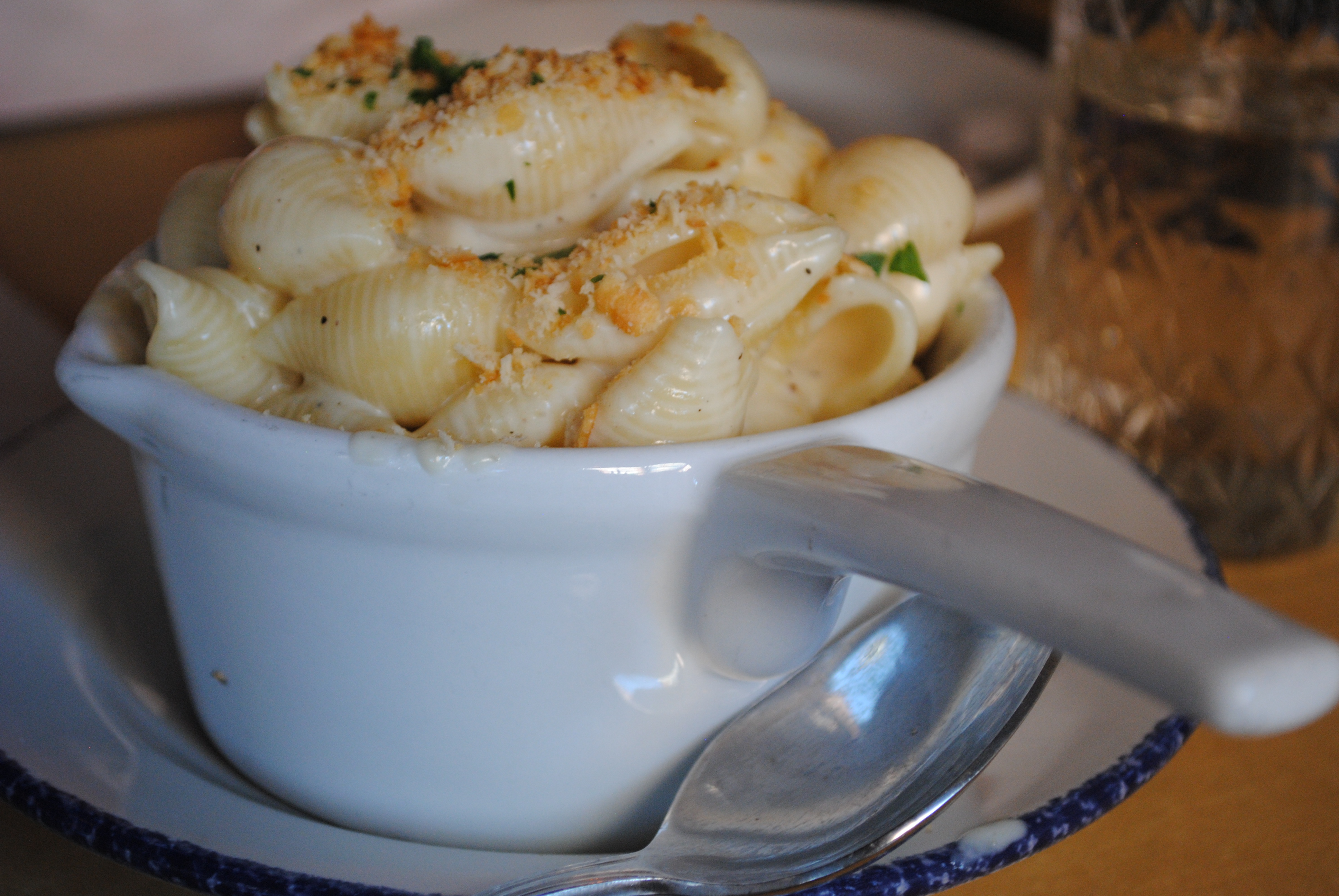 The buttermilk biscuits were particularly fluffy and delicious as was the fried chicken — very crispy coating and tender chicken meat. Cornbread a bit too dry and mealy — needs to be moist. The bacon cheddar and surprise raisin waffles were too weird for words. I would have been better off with the plain waffles. Macaroni and cheese didn’t really need the ‘creative’ Ritz cracker topping. Regular breadcrumbs would have been sufficient and just as satisfying.