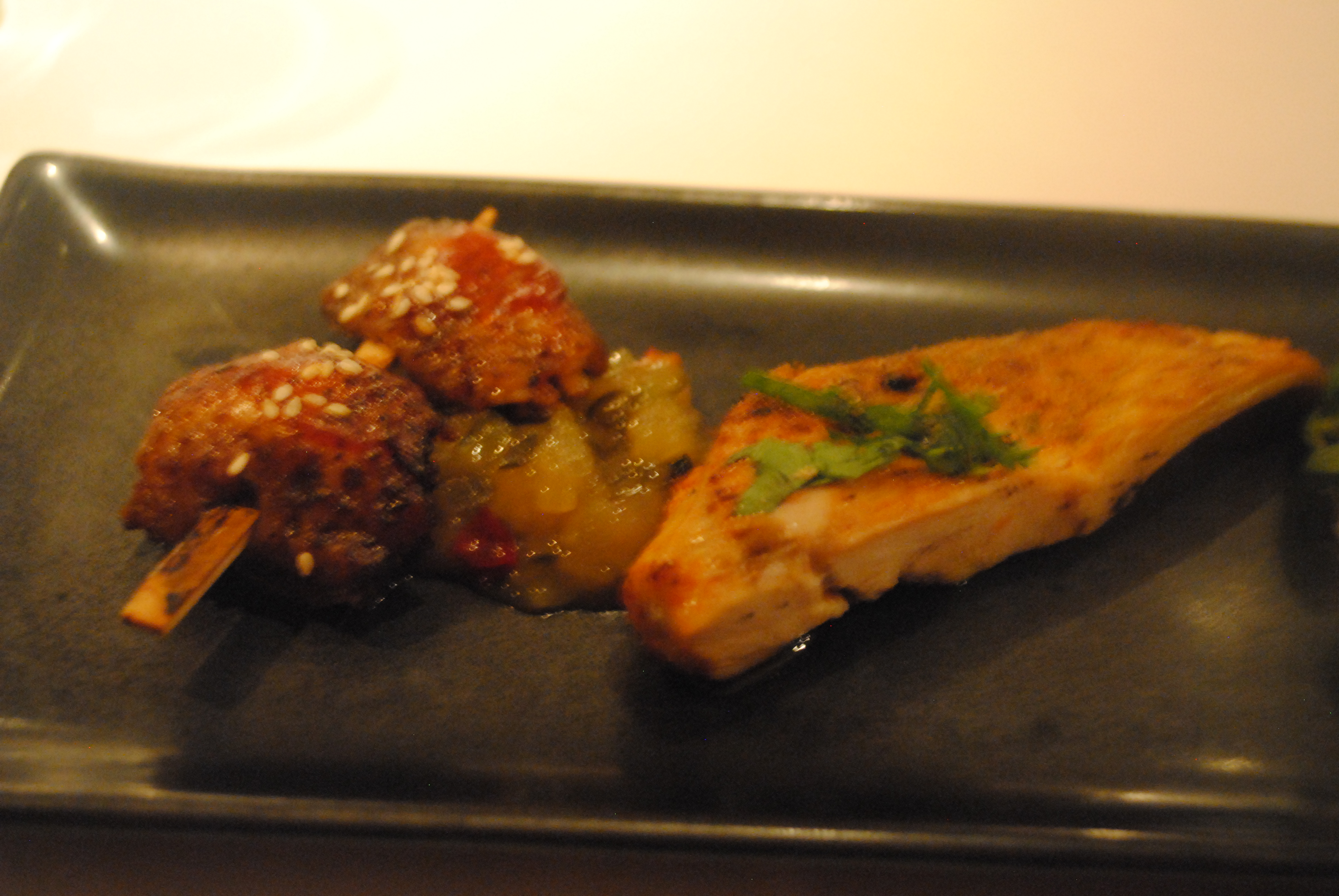Now that the usual Rav B rant is over, onto the most important element of a restaurant review: the food. For a starter, I ordered the Rajasthani spiced black leg chicken breast, confit of wings and cucumber ketchup (£9.50). Both the chicken breast and chicken wing meat were extremely tender.