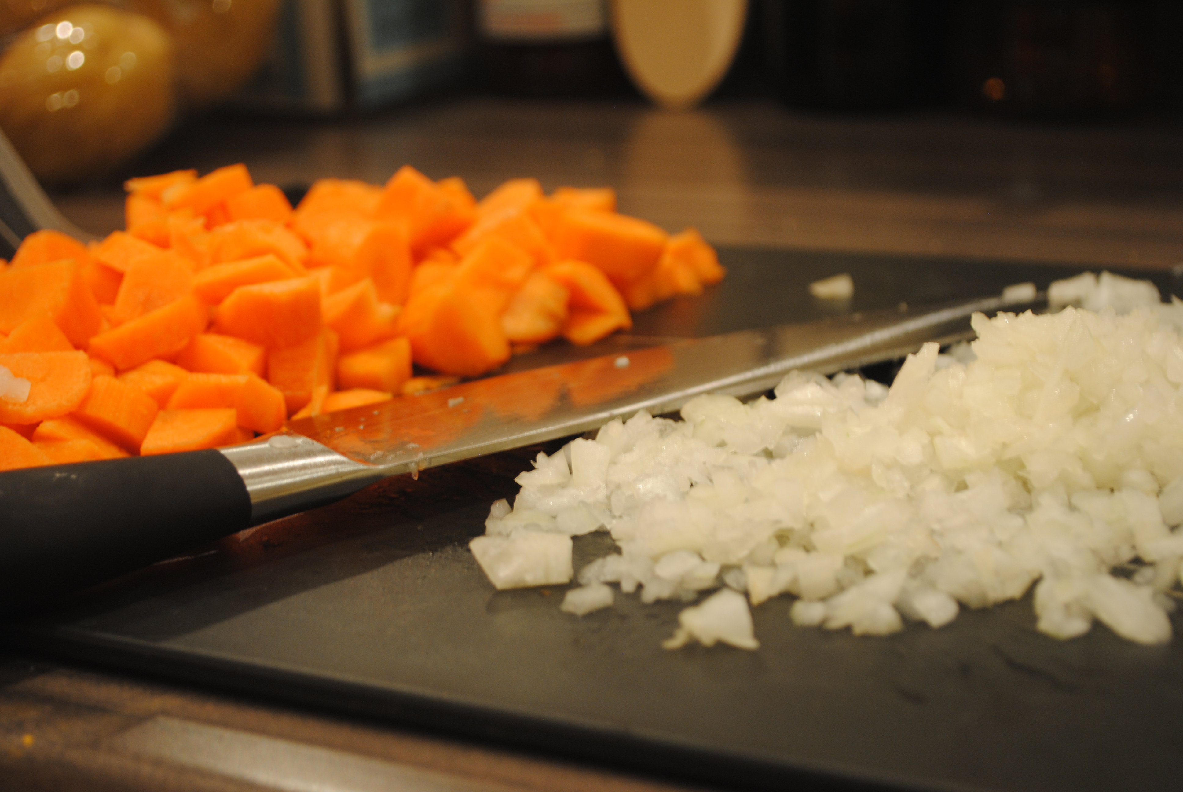 Chop the onions and carrots