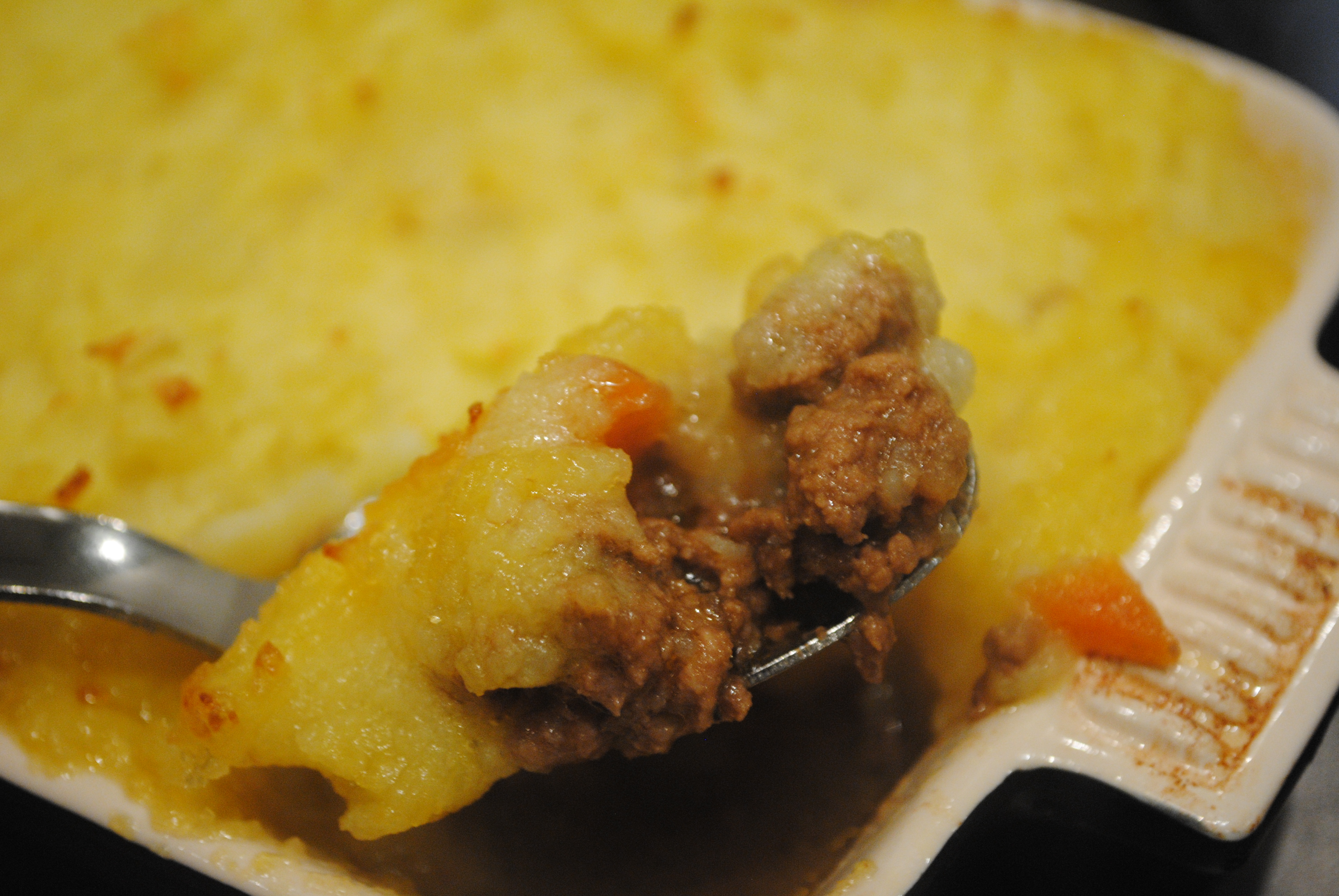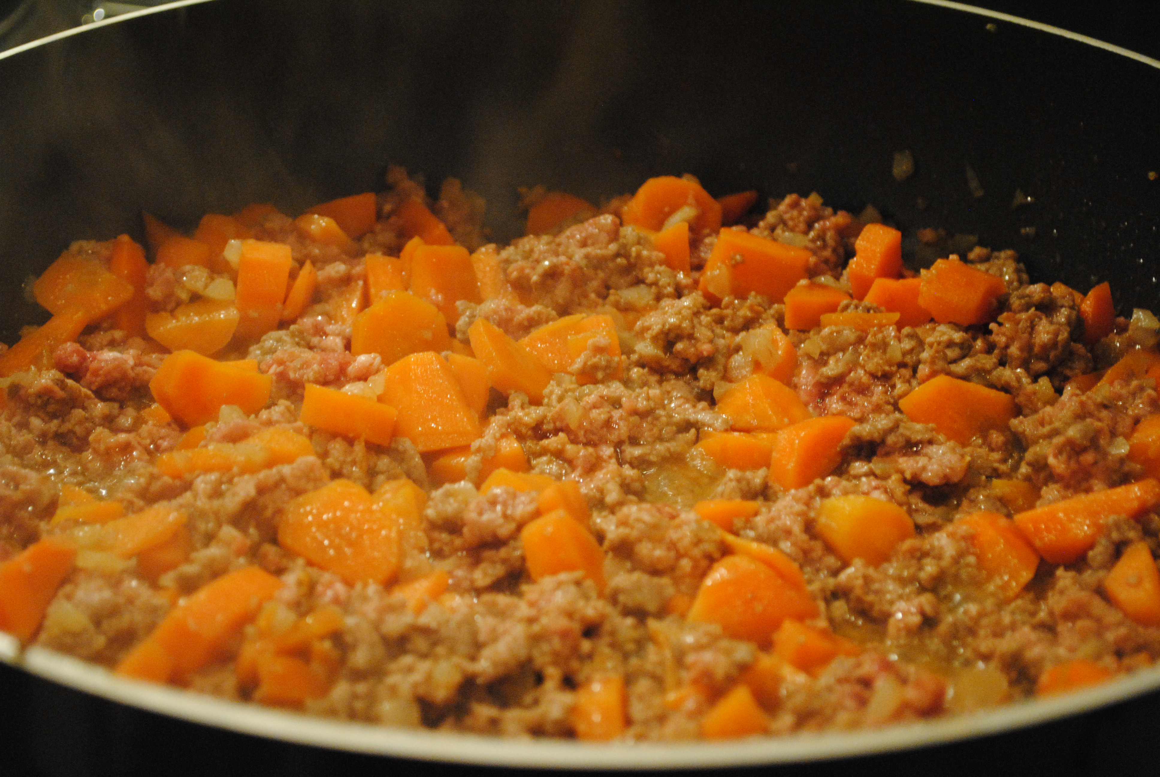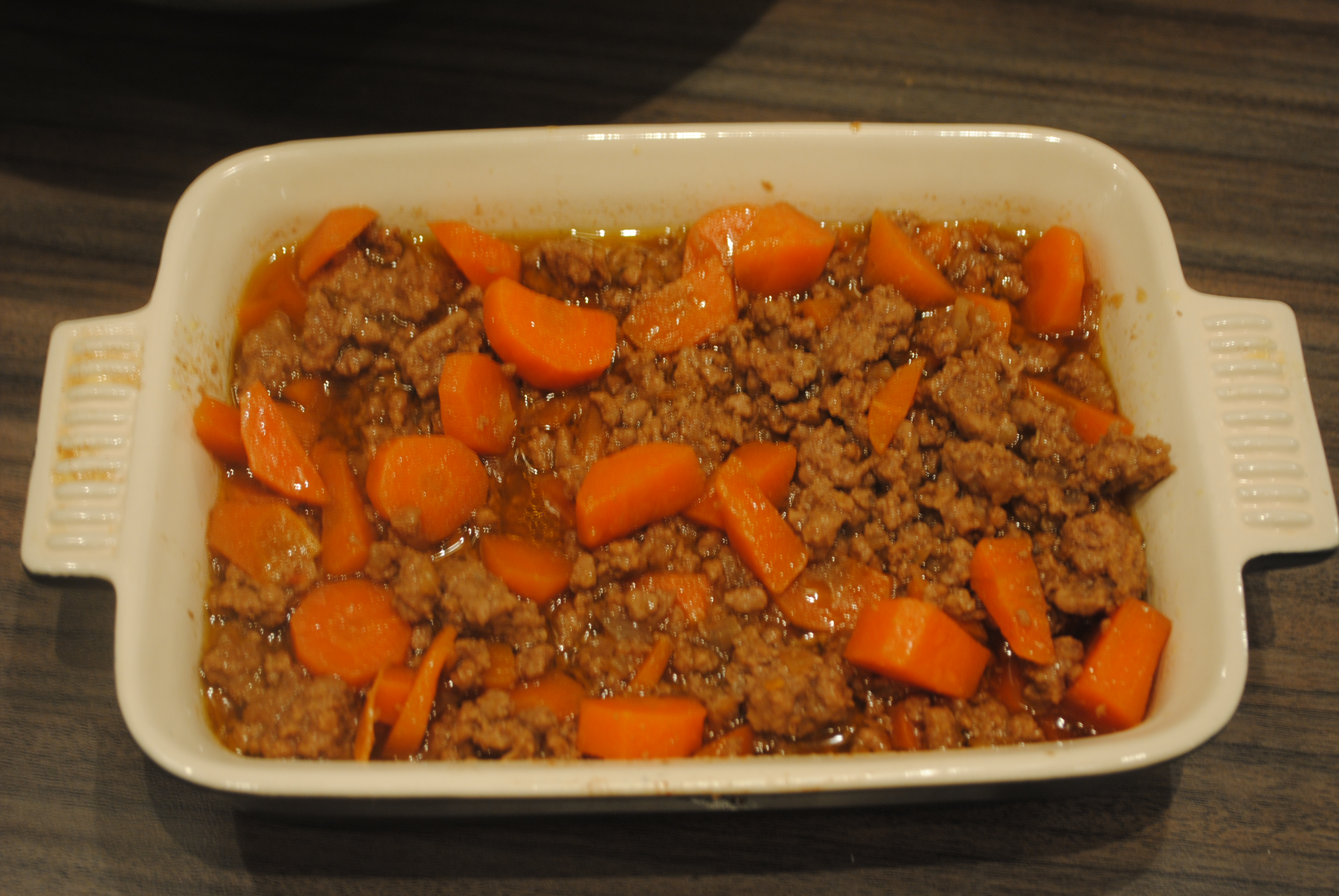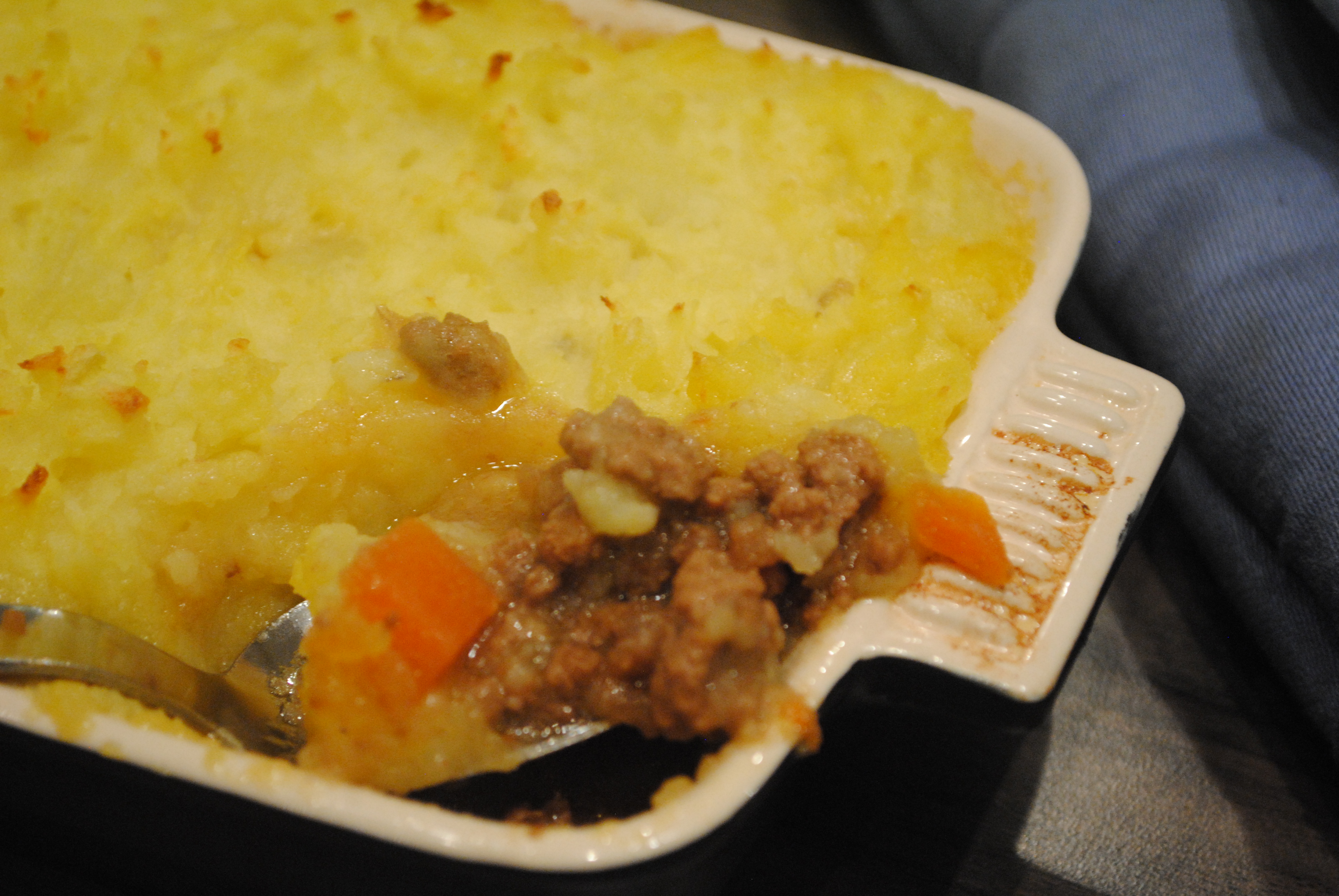 Sarah’s most hated meal – try adding frozen peas, makes it really sweet. Also we did a cottage pie last week but instead of mash used dauphinose potatoes as the topping, it was amazing.