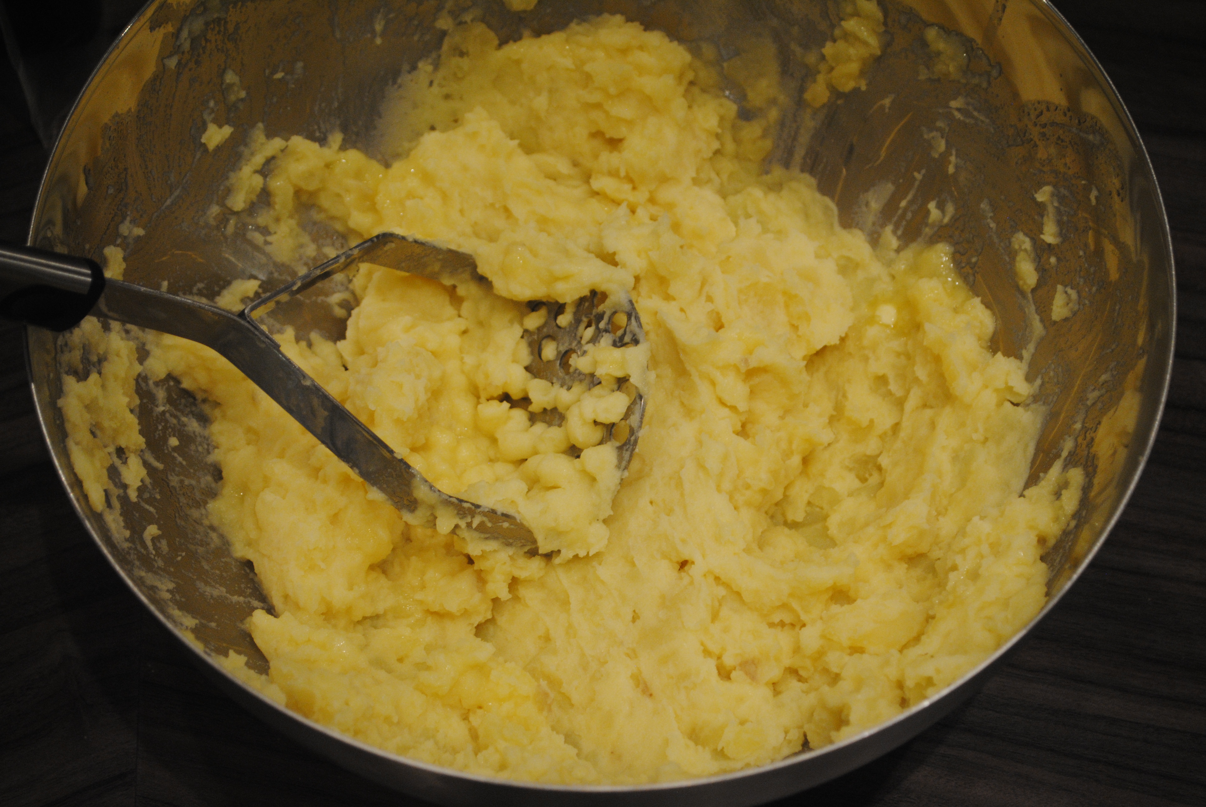 Meanwhile, heat the oven to 180C/ fan 160C. Make the mash. Boil the potatoes in salted water for approximately 15 mins until tender. Drain, then mash with the butter and milk.