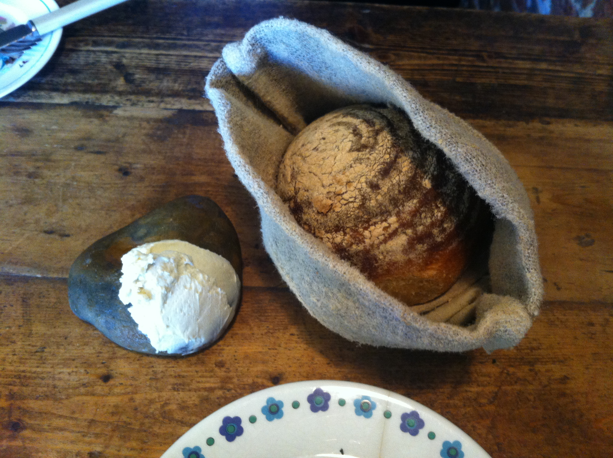 They bring out homemade rustic warm sourdough bread hiding in a little jute sack, served with a dollop of butter on a large pebble. I don’t know how people come up with the idea to serve butter on a pebble, but I like it. The butter is absolutely exquisite: it has been whipped up with smoked bone marrow and is luscious, creamy, and light all at the same time. Basically, pretty awesome.