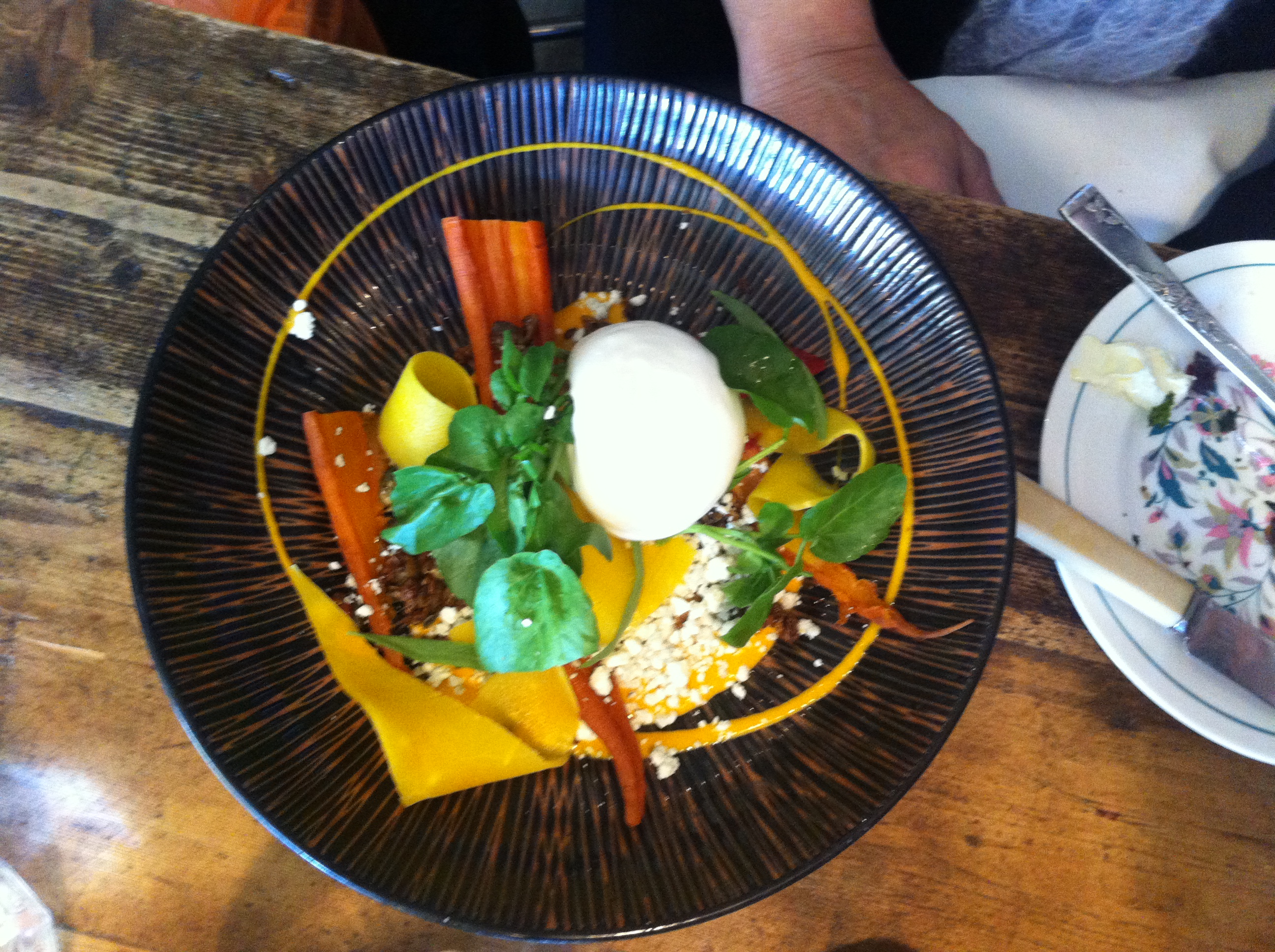 The chicken was something special — crispy skin and cooked just right, served with burnt kale (they just love kale here) and wild mushrooms. Simple yet delicious. This habit they have of using the same vegetables in many different dishes – I have the feeling it’s because they know the vegetables they’ve got are so good, the chefs know they’re good, so they figure why not use them in everything? And why shouldn’t restaurants do this? Serve the best vegetables you’ve got instead of making variety for the sake of variety and using sub-par ingredients, especially vegetables that aren’t right for the season. This is the part where I mention they still had a great selection of vegetables on offer. Bloody brilliant — how do they do it?!