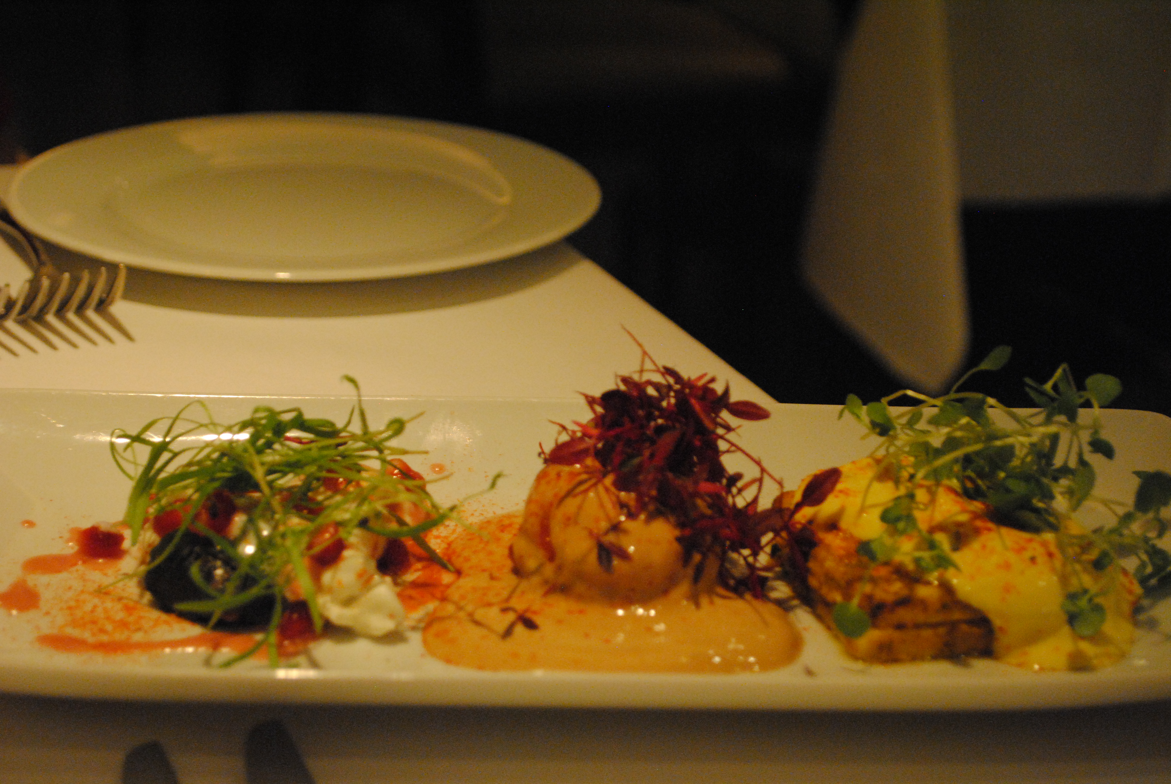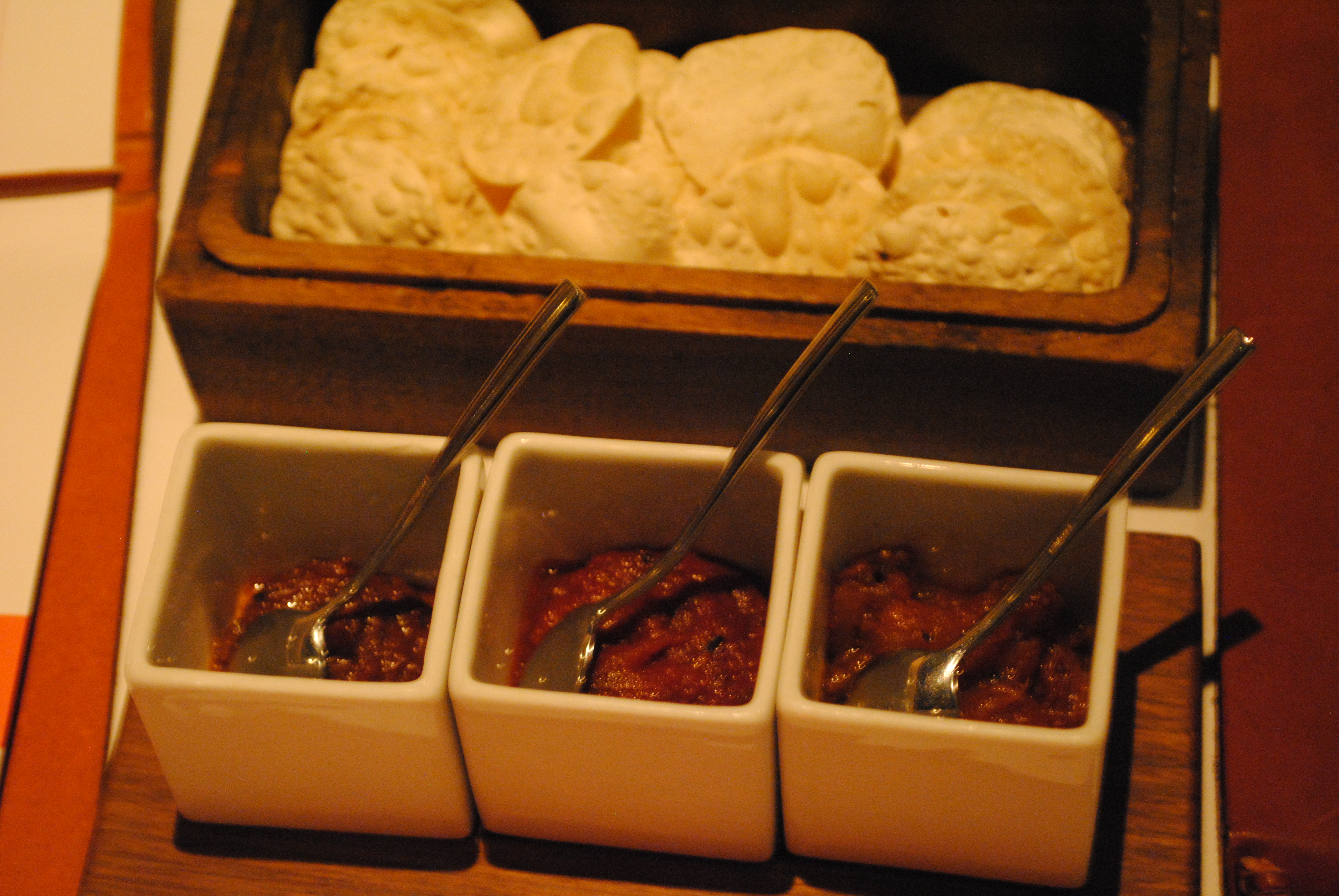 It was refreshing to see Benares wasn’t above serving classic poppadoms with various pepper and onion chutneys. A complimentary starter of some sort of lightly fried cheese with a coriander chili oil with was also a nice touch.