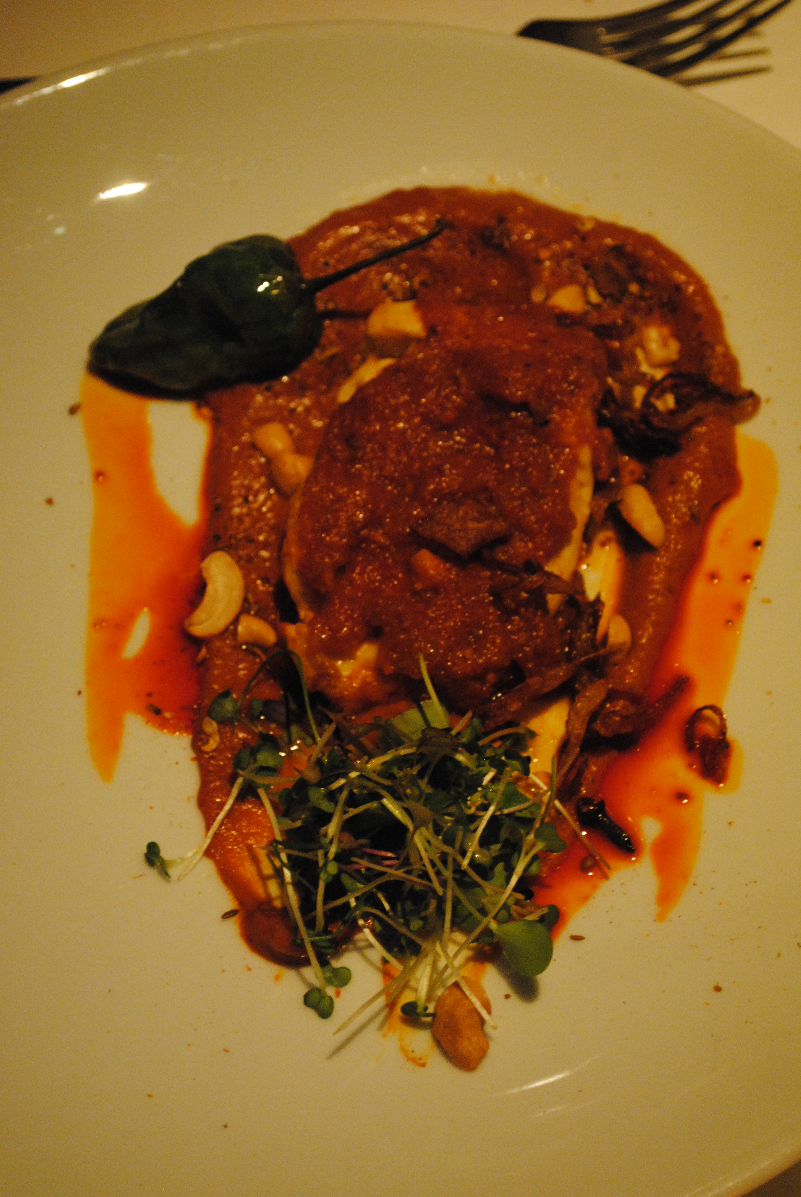 Tandoori grilled paneer was served with stuffed baby pepper and pan fried baby spinach cake (there were a lot of baby items happening on this menu).